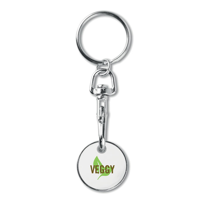 Een handige sleutelhanger met winkelwagenmuntje op nummer 4Sleutelhanger met winkelwagenmuntje